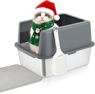 Stainless Steel Cat Litter Box, Covered Metal Litter Tray, Cat Litter Pans with High Sides, Kitty Litter Box for Small and Medium Cats Non Sticky, Anti-Urine Leakage 17.5 L x 13.5 W x 6 H