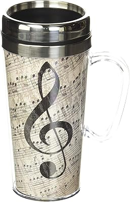 Spoontiques Insulated Travel Mug, 14oz - Double Wall Stainless & Acrylic Drink Cup with Twist Top Lid & Handle - Music
